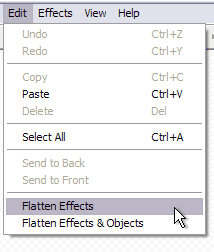 Flatten operation rasterizes current effects or efects together with graphics objects and applies them as part of the basic image. Once Flatten has been called you will continue to work with you see inside Captus Editor working area as with single picture.