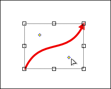 The default shape of the curve is a zig-zag between the opposite vertixes of the base rectangle. Two focal points marked as little yellow diamond-shaped dots can be dragged around to give different shape to the curve.