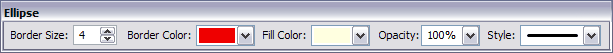 The ellipse is inscribed into base rectangle. Fill Color picker can set fill color or leave the background transparent.