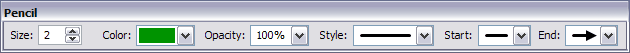 The original shape of the line created by Pencil Tool is a simple click-n-drag pencil drawing. Once you finished creating the pencil line you can modify the result by resizing the base rectangle and by changing the color, width and other properties of the line via toolbar.