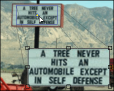 Little yellow diamond-shaped dot can be used to drag around the rectangle inscribing the area of the original picture to be spotlighted. Surrounding area can be blurred and dimmed to emphesize the spotlight rectangle.