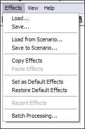 Using this menu you will be able to copy/paste effects between scenarios, load/save them to external files, store current set of effects as default.