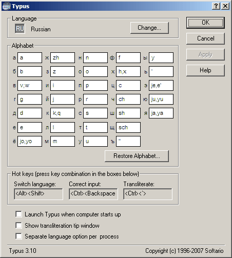 Typus allows you to enter Russian, Greek, Georgian etc. texts in any program running on MS Windows operating system.